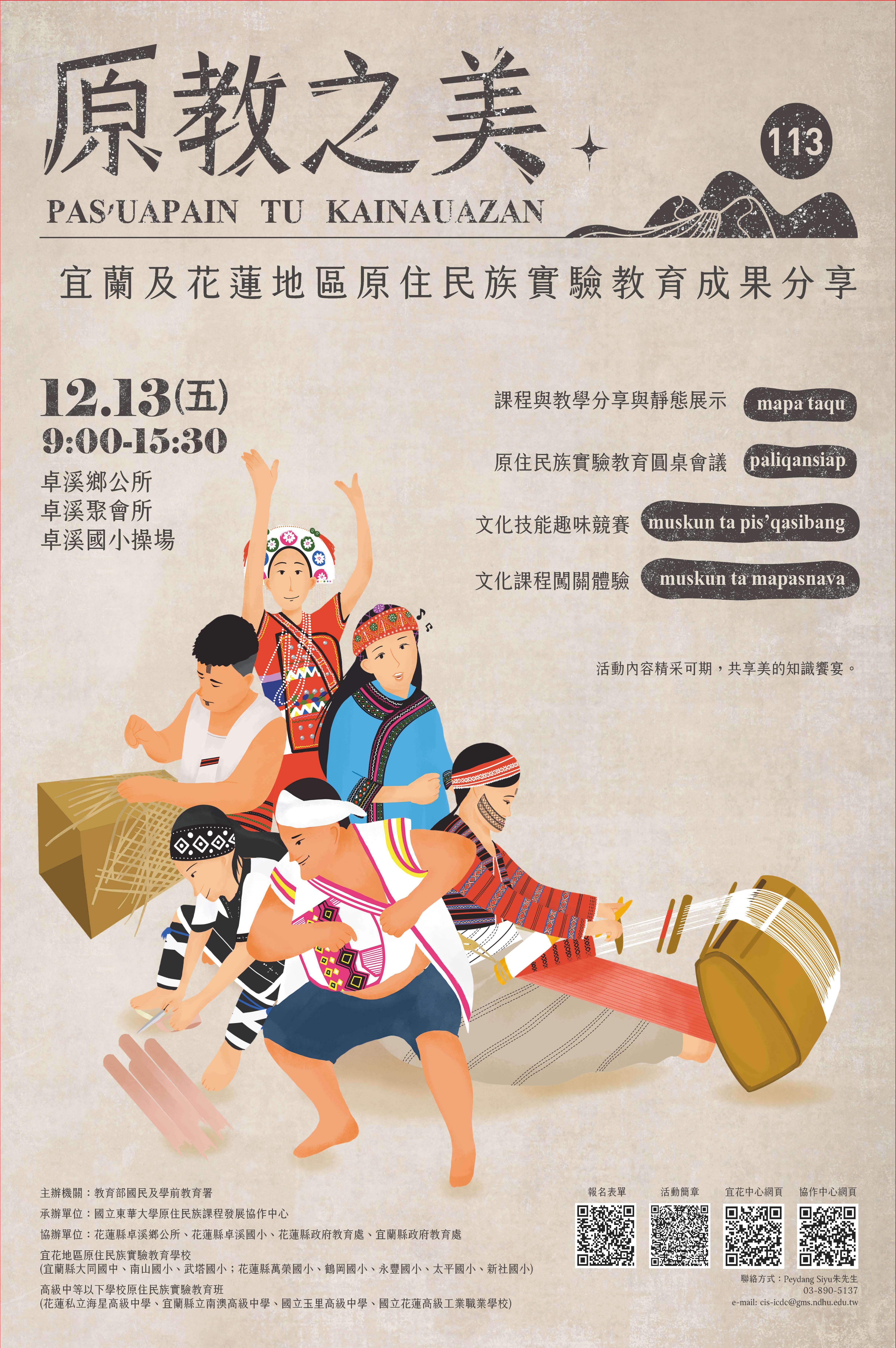 二、旨揭活動係由宜蘭及花蓮地區原住民族實驗學校進行課程、教學與學生學習成果分享,並透過文化課程體驗活動之方式,期能促進與會人員對於原住民族實驗教育有更為深入之理解,盼創造聚焦、交流及多元對話的機會,提供相互參照與學習的平台。