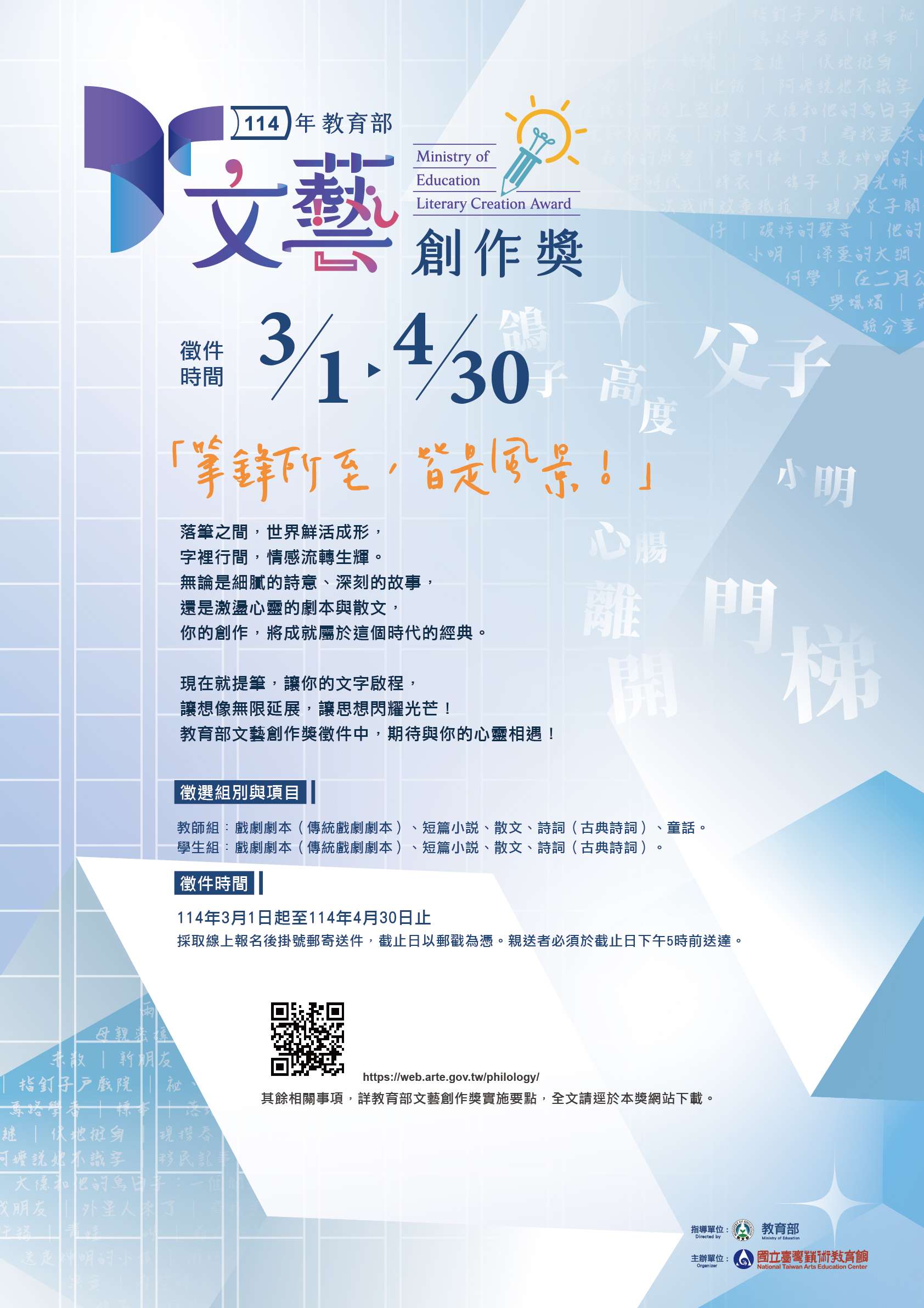 一、依據國立臺灣藝術教育館114年2月18日藝視字第1140200041號函辦理。