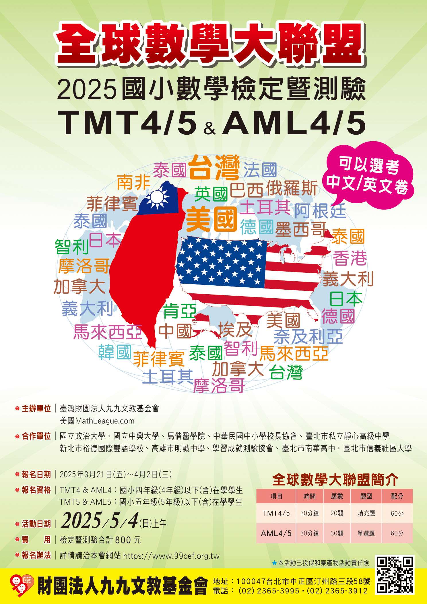 (二)AML為美國MathLeague.com所主辦之國際檢測。