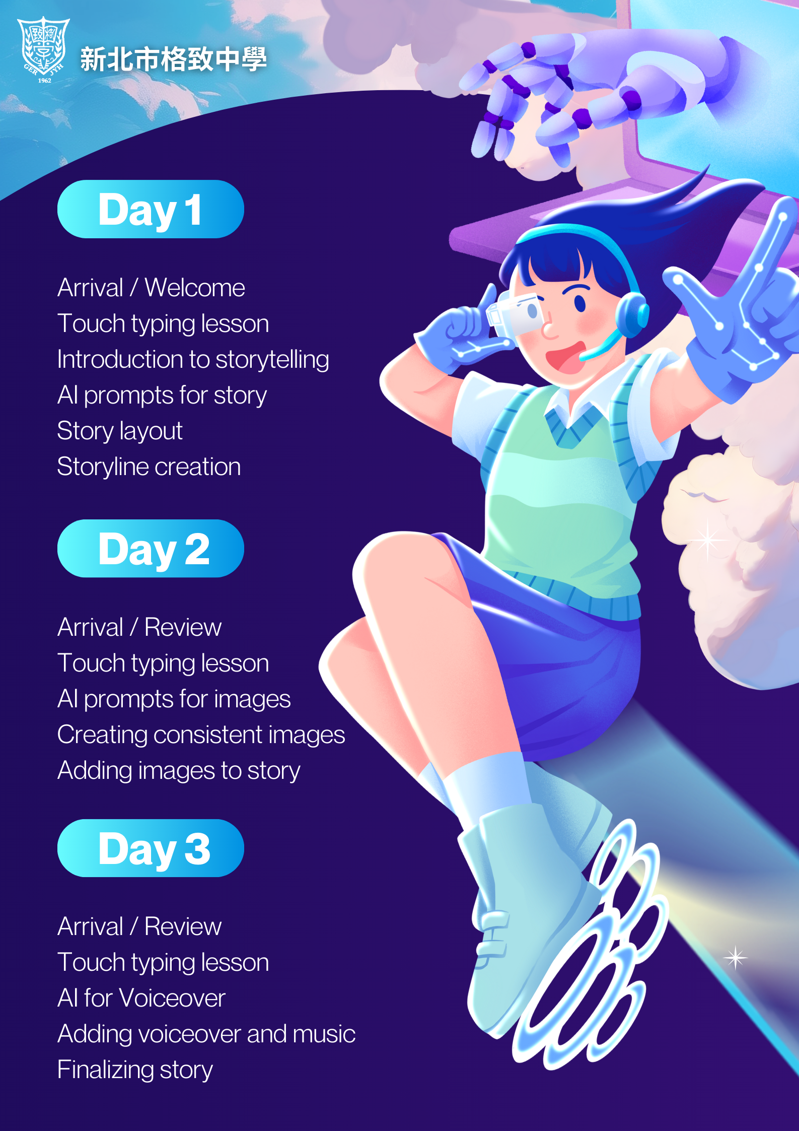 二、本活動特別設計聽、說、讀、寫融入AI數位工具中,藉由 趣味互動式教學,強化學生英語實際應用能力。
