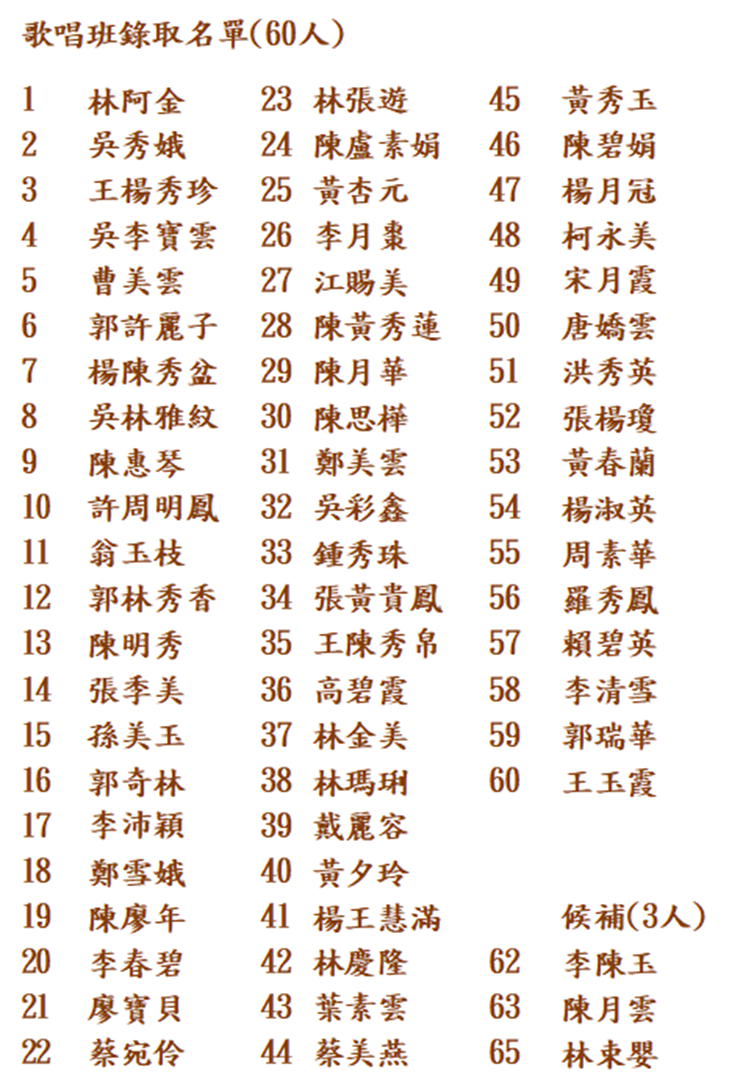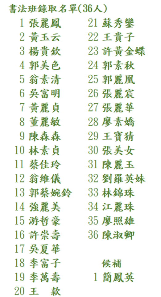 大家好,謝謝大家踴躍報名樂齡學堂,公告錄取名單如下請參考~